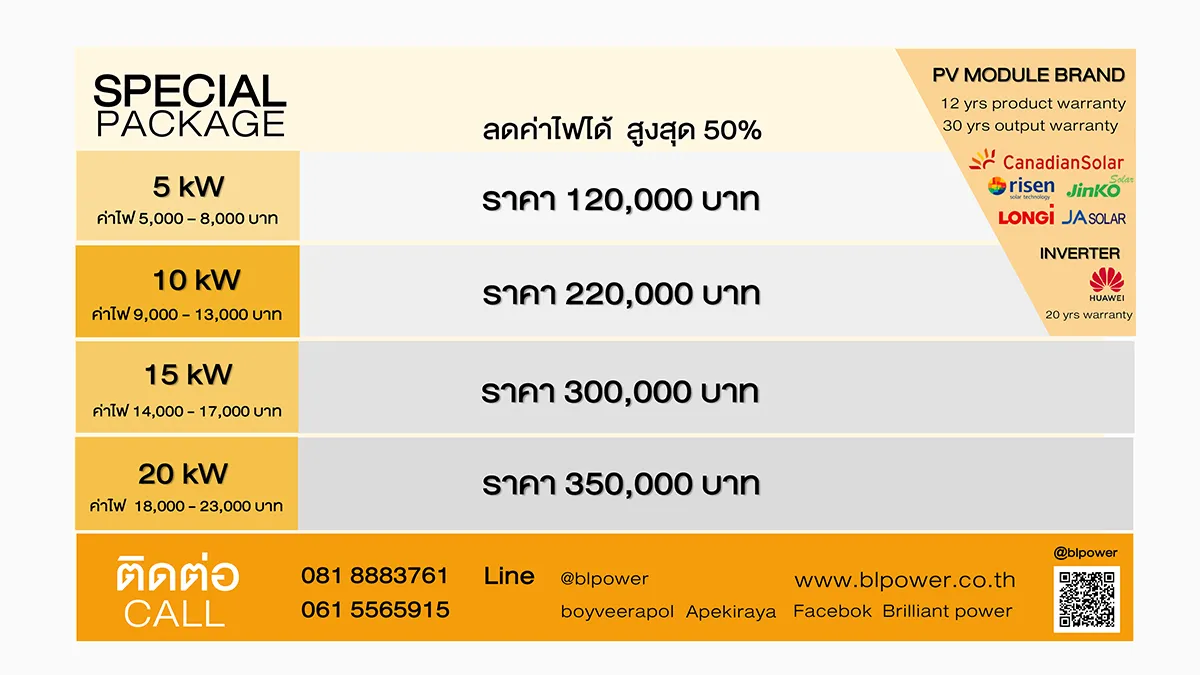 เสนอแบบติดตั้งโซล่าเซลล์ เบื้องต้น กำลังผลิตและ วัสดุอุปกรณ์ที่ใช้พร้อมราคา ตลอดจน แสดงผลผลิตและระยะเวลาการคืนทุน ตลอดอายุการใช้งานเพื่อลูกค้าตัดสินใจในการลงทุน