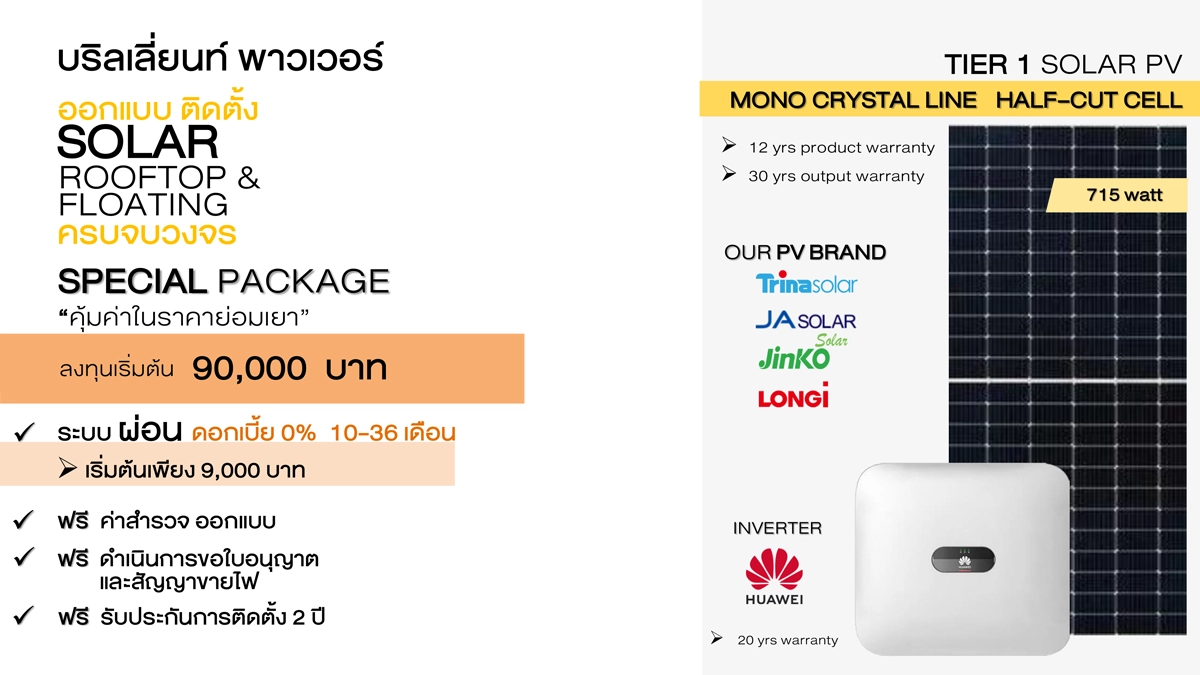 และจ่ายไฟที่ผลิตได้จากการติดตั้งโซล่า